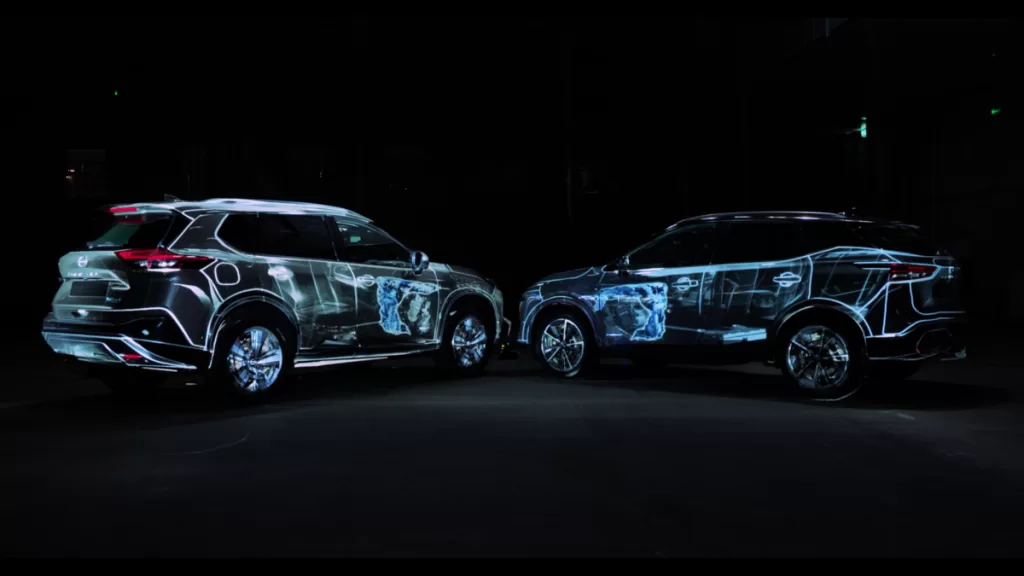 Jako předloha této technologické podívané slouží 3D modely motoru a hnacího ústrojí e-POWER. Tyto digitální návrhy proměňují každé vozidlo v plátno pro inovace pomocí anamorfní projekce a umožňují divákům vzácný pohled na fungování systému e-POWER a na to, jak jeho jedinečná konfigurace zajišťuje citlivou, plynulou a tichou jízdu díky tomu, že kola jsou ze 100 % poháněna elektromotorem.