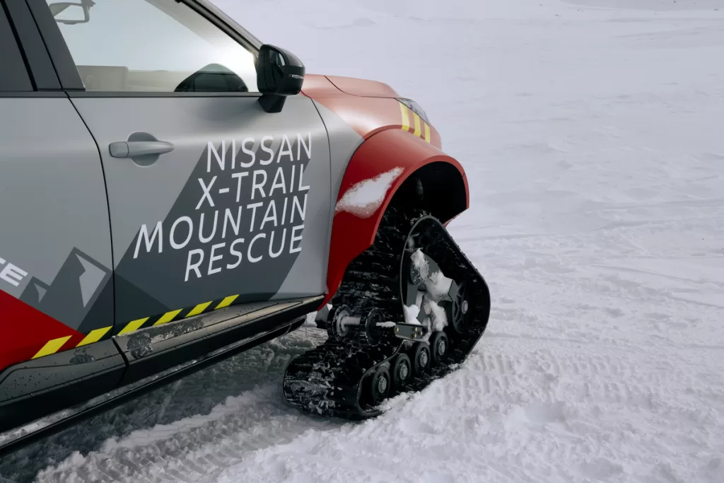 Úpravy modelu X-Trail Mountain Rescue zahrnují výměnu kol za sněhové pásy, které zajišťují jistou trakci na kluzkých tratích. Odstranění zadních sedadel umožňuje instalaci nosítek pro převoz zraněných lyžařů do nejbližšího zdravotnického zařízení a místo pro zdravotníka.