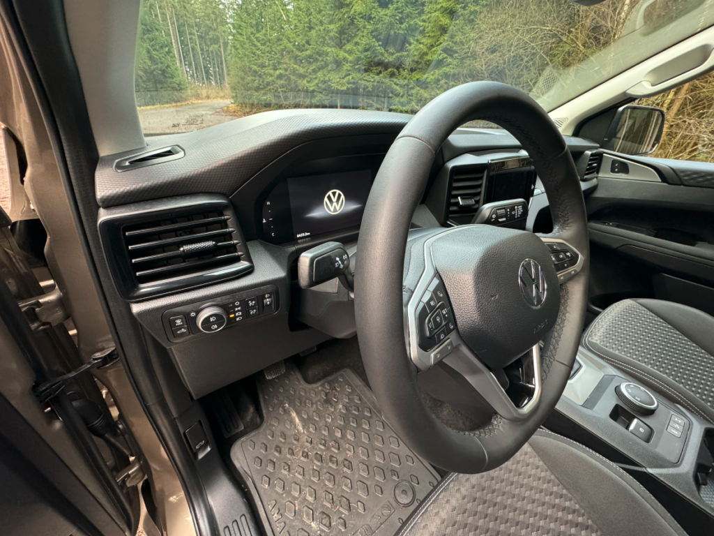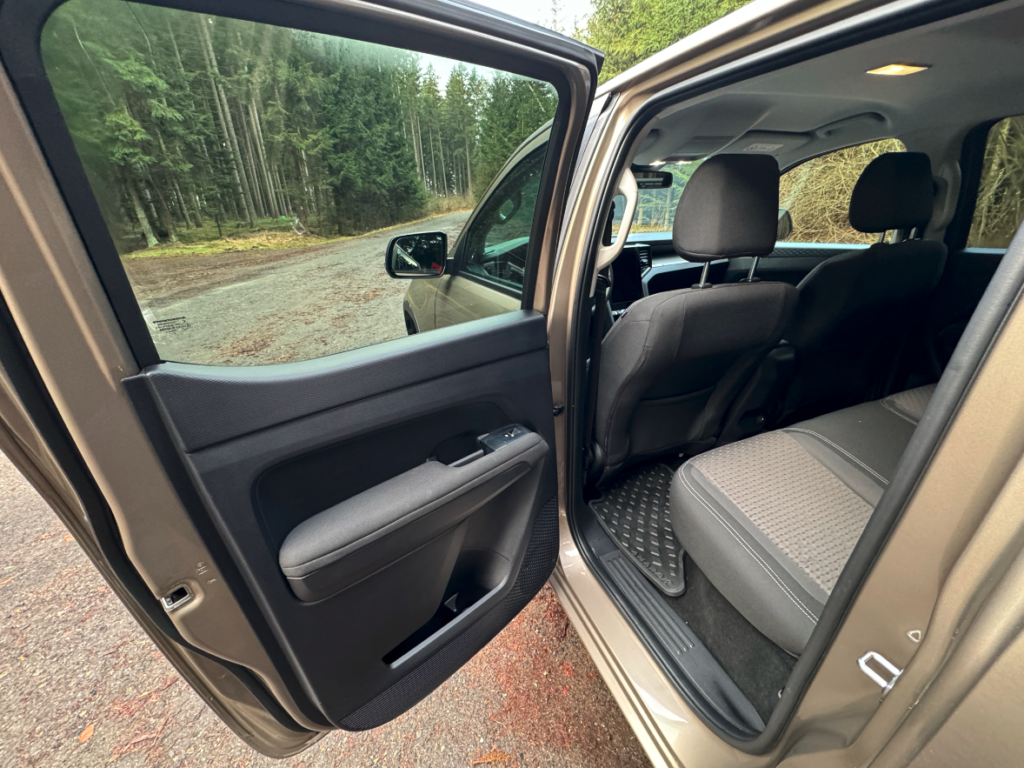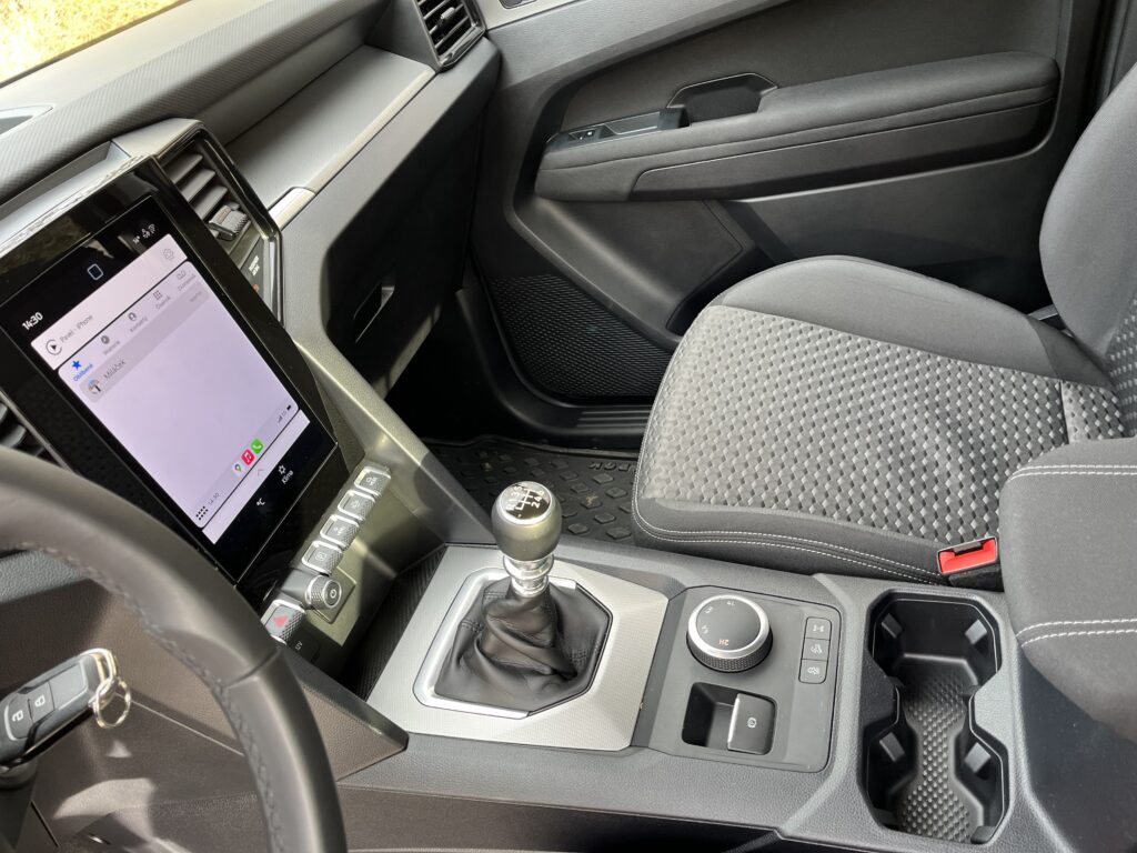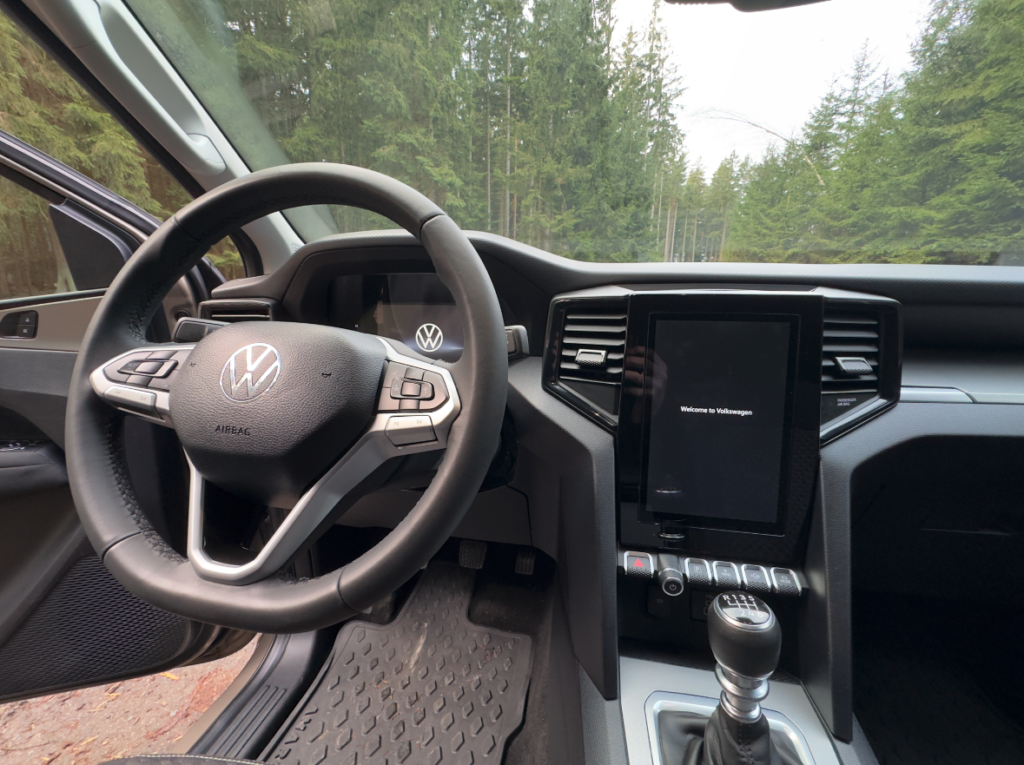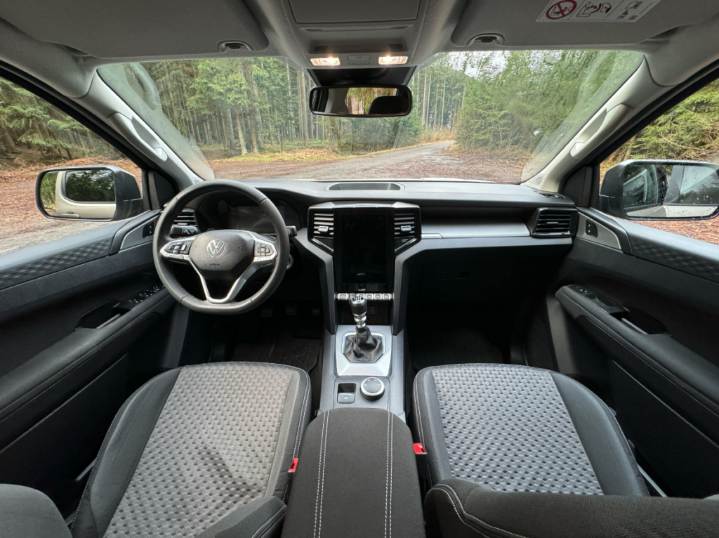 Amarok je zkrátka příjemně prostorný pick-up. Řidič i spolujezdec sedí pohodlně, dost místa je také pro děti v sedačkách. Imitace kůže na sedadlech působí vkusně, sedadla jsou pohodlná a příjemná na posed. České zastoupení divize Volkswagen Užitkové vozy vybavilo interiér vozu gumovými koberci, tažným zařízením, ochrannými prvky pod motorem a převodovkou, nástřik korby a osvětlení tohoto prostoru.