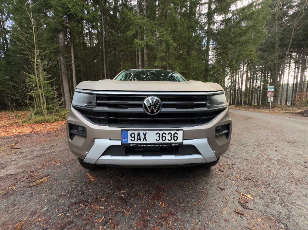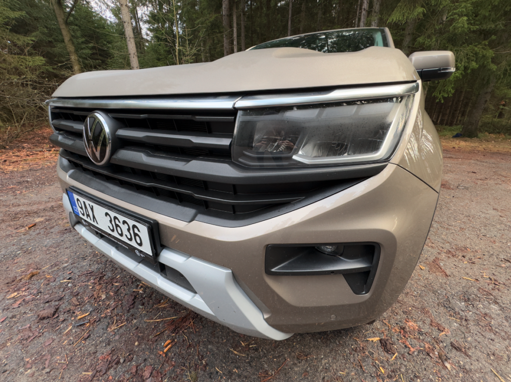 Obliba pick-upů na domácí půdě roste, důkazem toho je Volkswagen Amarok, který vás nenechá chvíli vydechnout. Doslova mohutná až agresivní přední maska v sobě ukrývá ve spodní části čidlo a radar adaptabilního tempomatu. To vše zahaluje ochranný šedivý rámeček. Stejně tak jsou v dolní části mlhovky, ty jsou velmi vkusně zasazeny do černých rámečků. Na obou stranách v jsou LED světla IQ LIGHT LED matrix. Která jsou součástí paketu Parkpilot plus pro tažné + IQ LIGHT.