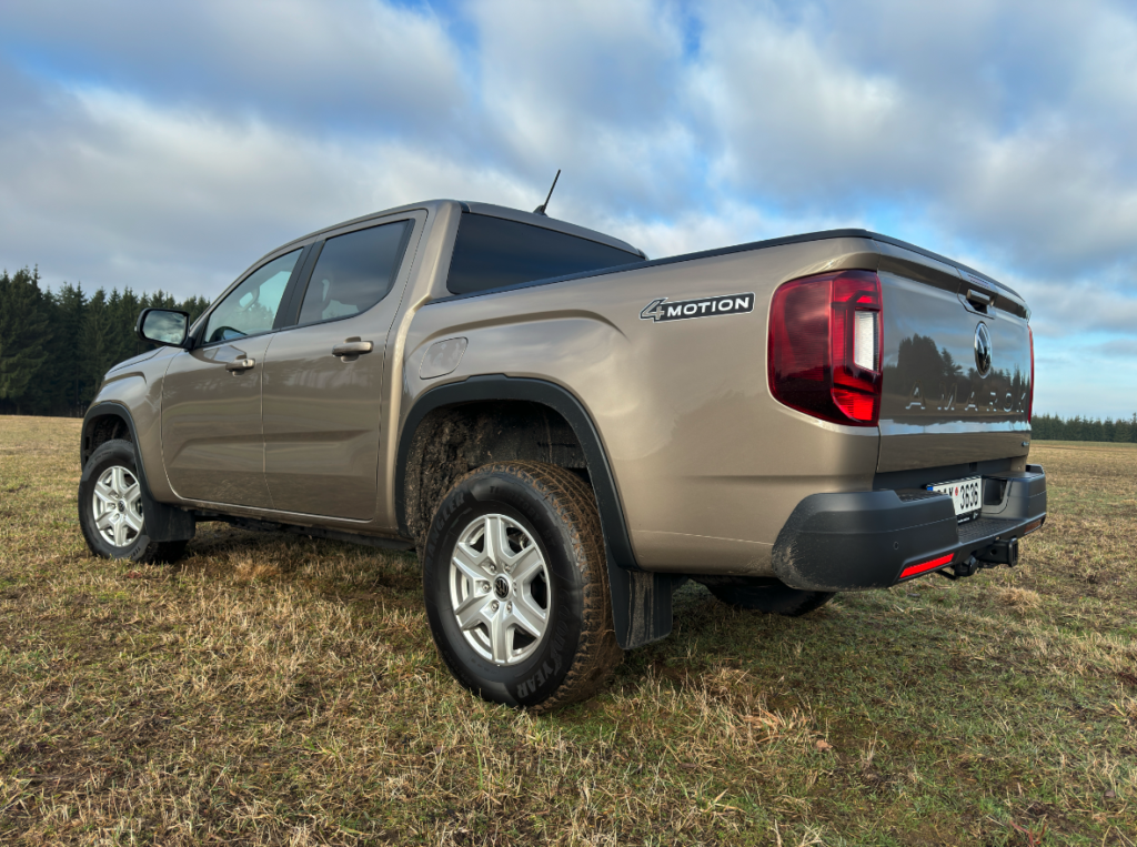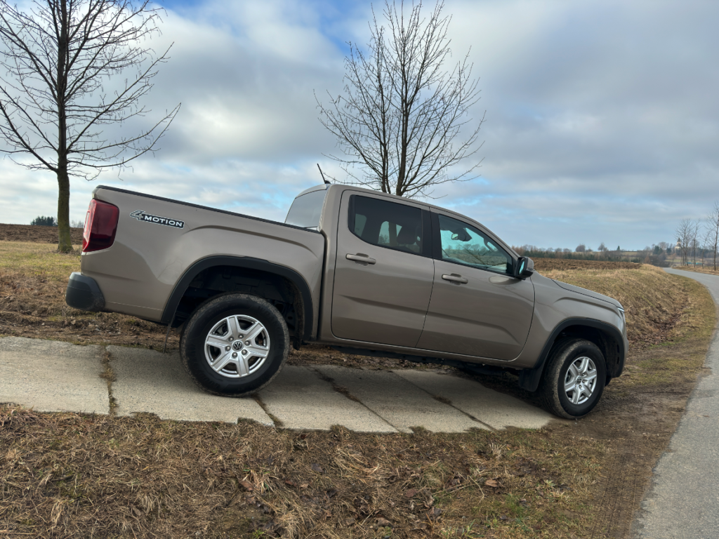 Pouhým otočením voliče na centrálním panelu lze zvolit buď režim, v němž o připojení pohonu předních kol rozhoduje v závislosti na povrchu pod kolem elektronika, nebo stálý pohon všech kol s rozložením točivého momentu mezi obě nápravy v poměru 50:60, případně pohon všech kol s redukcí. Výborné jsou nájezdové a přechodové úhly v tomto případě se Amarok protáhne lehce s elegancí.