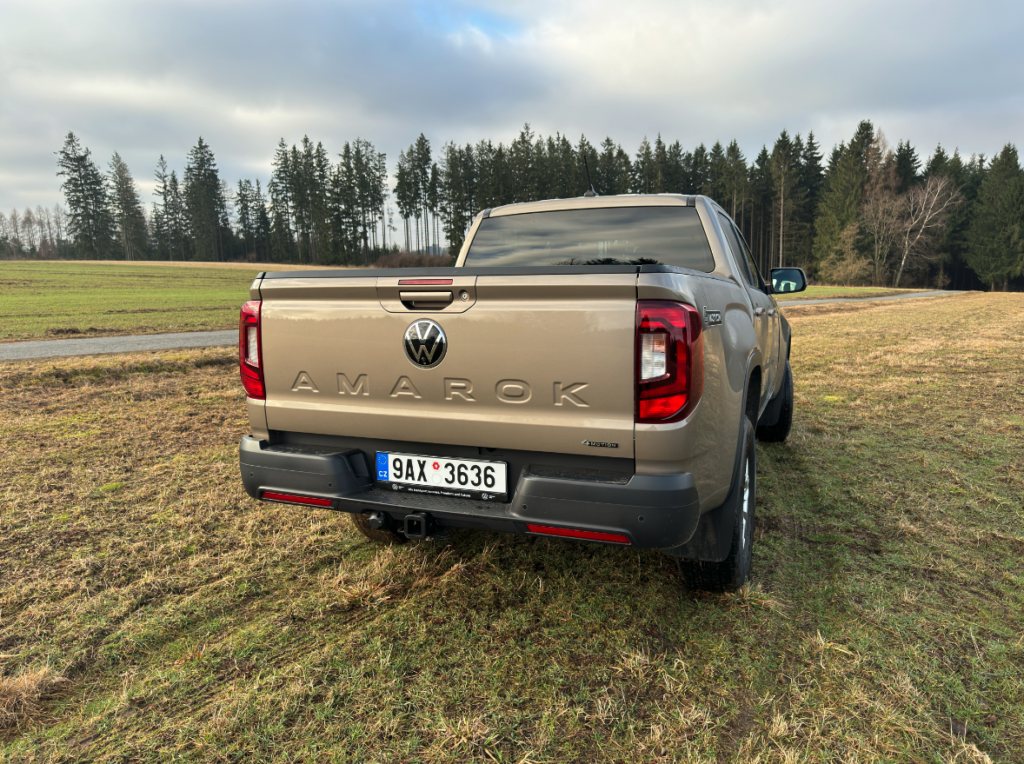 Amarok má jednodušší infotainment, jednodušší ovládání přístrojového štítu. Společná s Fordem je jen střecha, kliky dveří a kryty zrcátek, jinak má Amarok jedinečný design, sebevědomý výraz a elegantní zadní světla autu sluší.